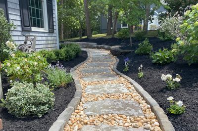Hardscape and landscape pathways create a seamless transition from the front yard to the backyard by blending functional grading and drainage solutions with thoughtful design and storytelling. A well-planned flag stone walk or series of Maya Steppers guides visitors through a subtle narrative, shifting the mood from public to private while encouraging emotional decompression and relaxation. Carefully installed stone & paver edging defines movement, while field stone walls, hedges, and layered privacy plantings gently enclose the journey. Along the way, lush sod lawns and curated garden beds soften the hardscape elements, balancing structure with nature. The result is more than just a path — it’s an intentional experience that enhances flow, function, and tranquility from the first step to the backyard retreat.